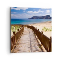Bild auf Leinwand - Leinwandbild - Holzweg zum Strand mit Meerblick - 80x120cm - Bring mich zu den glücklichen Inseln - Moderne Wanddekoration für Wohnzimmer und Schlafzimmer ARTTOR