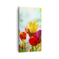 Bild auf Leinwand - Leinwandbild - Bunte Tulpen im Sonnenschein - 80x120cm - Alle Farben der Sonne - Moderne Wanddekoration für Wohnzimmer und Schlafzimmer ARTTOR