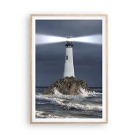 Glasbild - Bild auf glas - Ein Leuchtturm auf einem Felsen, umgeben von stürmischer See - 80x120cm - Hier... hier... hier! - Moderne Wanddekoration für Wohnzimmer und Schlafzimmer ARTTOR