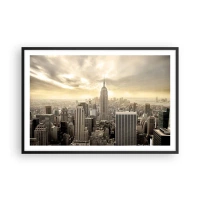 Poster in einem schwarzem Rahmen - Panorama der Stadt mit Blick auf das Empire State Building - 100x70cm - New York aus Grau - Moderne Wanddekoration für Wohnzimmer und Schlafzimmer ARTTOR