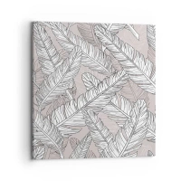 Bild auf Leinwand - Leinwandbild - Schwarz-weißes Muster mit Bananenblättern auf hellem Hintergrund - 70x100cm - Ein Federwirbel - Moderne Wanddekoration für Wohnzimmer und Schlafzimmer ARTTOR