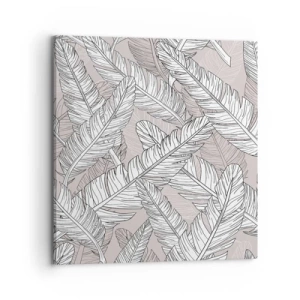 Bild auf Leinwand - Leinwandbild - Schwarz-weißes Muster mit Bananenblättern auf hellem Hintergrund - 80x120cm - Ein Federwirbel - Moderne Wanddekoration für Wohnzimmer und Schlafzimmer ARTTOR