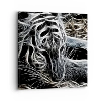 Glasbild - Bild auf glas - Abstrakter Tiger in leuchtenden Linien auf schwarzem Hintergrund - 50x70cm - Eine Studie über die Leichtigkeit der Katze - Moderne Wanddekoration für Wohnzimmer und Schlafzimmer ARTTOR