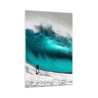 Glasbild - Bild auf glas - Surfer vor einer riesigen Welle - 80x120cm - Herausforderung angenommen - Moderne Wanddekoration für Wohnzimmer und Schlafzimmer ARTTOR