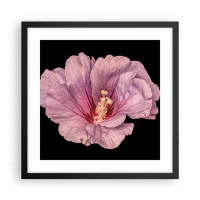 Glasbild - Bild auf glas - Nahaufnahme einer rosa Hibiskusblüte vor schwarzem Hintergrund - 100x70cm - Direkt ins Herz - Moderne Wanddekoration für Wohnzimmer und Schlafzimmer ARTTOR