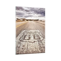 Glasbild - Bild auf glas - Route 66 in einem Wüstenklima mit malerischem Himmel - 80x120cm - Mother Road - eine amerikanische Legende - Moderne Wanddekoration für Wohnzimmer und Schlafzimmer ARTTOR