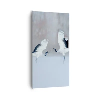 Glasbild - Bild auf glas - Zwei Kraniche tanzen in einer nebligen Landschaft - 80x120cm - Tanz im Nebel - Moderne Wanddekoration für Wohnzimmer und Schlafzimmer ARTTOR