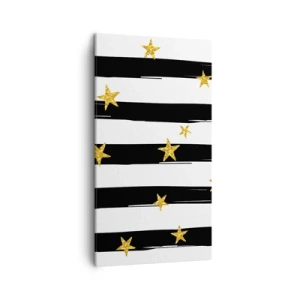 Bild auf Leinwand - Leinwandbild - Schwarz-weiße Streifen mit goldenen Sternen - 80x120cm - Wir wurden alle unter einem glücklichen Stern geboren - Moderne Wanddekoration für Wohnzimmer und Schlafzimmer ARTTOR