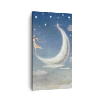 Bild auf Leinwand - Leinwandbild - Eine Frau im Mond, umgeben von Sternen und Wolken - 80x120cm - Blauer Freier - Moderne Wanddekoration für Wohnzimmer und Schlafzimmer ARTTOR