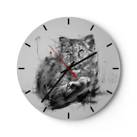 Glasbild - Bild auf glas - Schwarz-Weiß-Porträt eines Löwen im künstlerischen Stil mit dynamischen Strichen. - 80x120cm - Ja, ich höre aufmerksam zu - Moderne Wanddekoration für Wohnzimmer und Schlafzimmer ARTTOR