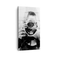 Glasbild - Bild auf glas - Schwarz-Weiß-Doppelbelichtungsporträt eines Fotografen - 80x120cm - Schöpfer und Material - Moderne Wanddekoration für Wohnzimmer und Schlafzimmer ARTTOR