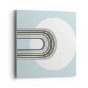 Bild auf Leinwand - Leinwandbild - Eine minimalistische Komposition mit einem Kreis und Linien auf pastellfarbenem Hintergrund. - 70x100cm - Unwiderstehliche Anziehungskraft - Moderne Wanddekoration für Wohnzimmer und Schlafzimmer ARTTOR