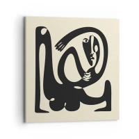 Bild auf Leinwand - Leinwandbild - Eine abstrakte Figur in Schwarz auf beigem Hintergrund - 80x120cm - Fast wie Picasso - Moderne Wanddekoration für Wohnzimmer und Schlafzimmer ARTTOR