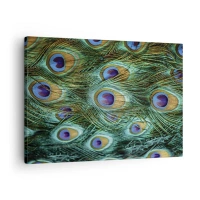 Bild auf Leinwand - Leinwandbild - Details von Pfauenfedern in satten Farben - 70x50cm - Ein Blick mit Pfauenaugen - Moderne Wanddekoration für Wohnzimmer und Schlafzimmer ARTTOR