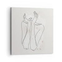 Bild auf Leinwand - Leinwandbild - Konturlinie zeigt die Hände einer Frau auf hellem Hintergrund - 70x100cm - Ein träumerischer Moment - Moderne Wanddekoration für Wohnzimmer und Schlafzimmer ARTTOR