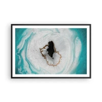Poster in einem schwarzem Rahmen - Abstraktes Geodenmotiv in Türkis-, Weiß- und Goldtönen - 100x70cm - Nach Innen eindringen - Moderne Wanddekoration für Wohnzimmer und Schlafzimmer ARTTOR