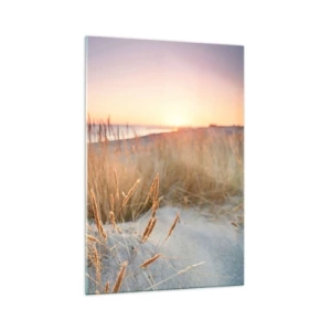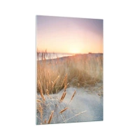 Glasbild - Bild auf glas - Sonnenuntergangsstrand mit hohem Gras - 70x100cm - Das baltische Wiegenlied - Moderne Wanddekoration für Wohnzimmer und Schlafzimmer ARTTOR