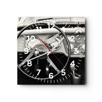 Glasbild - Bild auf glas - Schwarz-weißes Oldtimer-Interieur - 80x120cm - Ein Sammlertraum - Moderne Wanddekoration für Wohnzimmer und Schlafzimmer ARTTOR