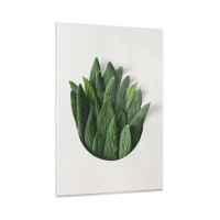 Glasbild - Bild auf glas - Eine Komposition aus grünen Blättern auf hellem Hintergrund - 80x120cm - Ungebremste Neugier - Moderne Wanddekoration für Wohnzimmer und Schlafzimmer ARTTOR