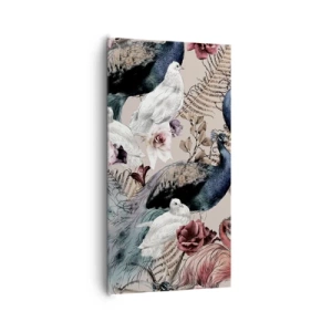Glasbild - Bild auf glas - Eine Landschaft mit Pfauenfedern, Rosen und Vögeln im romantischen Stil. - 80x120cm - Im Schlossgarten - Moderne Wanddekoration für Wohnzimmer und Schlafzimmer ARTTOR