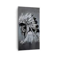 Glasbild - Bild auf glas - Porträt eines Indianerhäuptlings mit traditioneller Kopfbedeckung - 80x120cm - Zurück zu den Wurzeln - Moderne Wanddekoration für Wohnzimmer und Schlafzimmer ARTTOR