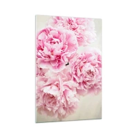 Glasbild - Bild auf glas - Ein Strauß rosa Pfingstrosen auf hellem Hintergrund - 80x120cm - In rosa Glamour - Moderne Wanddekoration für Wohnzimmer und Schlafzimmer ARTTOR