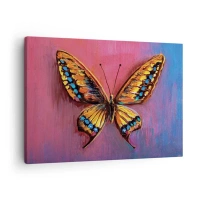 Bild auf Leinwand - Leinwandbild - Bunter Schmetterling auf abstraktem Hintergrund - 70x50cm - Ein Juwel der Natur - Moderne Wanddekoration für Wohnzimmer und Schlafzimmer ARTTOR