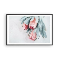Poster in einem schwarzem Rahmen - Dezente rosa Protea-Blüten auf hellem Hintergrund - 100x70cm - Schämen sich für ihre eigene Schönheit - Moderne Wanddekoration für Wohnzimmer und Schlafzimmer ARTTOR