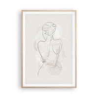 Glasbild - Bild auf glas - Eine minimalistische Skizze einer weiblichen Silhouette vor hellem Hintergrund. - 80x120cm - Wie ein sensibles Instrument - Moderne Wanddekoration für Wohnzimmer und Schlafzimmer ARTTOR