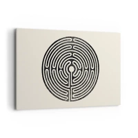 Bild auf Leinwand - Leinwandbild - Schwarz-weißes kreisförmiges Labyrinth auf hellem Hintergrund - 100x70cm - Geheimnisvolle Ordnung - Moderne Wanddekoration für Wohnzimmer und Schlafzimmer ARTTOR