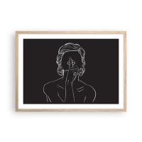Poster in einem schwarzem Rahmen - Minimalistische Silhouette einer Frau auf schwarzem Hintergrund - 100x70cm - Schönheit erblüht in der Stille - Moderne Wanddekoration für Wohnzimmer und Schlafzimmer ARTTOR
