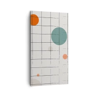 Bild auf Leinwand - Leinwandbild - Abstrakte farbige Kreise auf einem geometrischen Gitterhintergrund - 100x70cm - Gefangen. Wir oder sie? - Moderne Wanddekoration für Wohnzimmer und Schlafzimmer ARTTOR