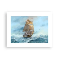Poster - Ein Segelschiff auf stürmischer See - 100x70cm - Über die Wellen gleiten - Moderne Wanddekoration für Wohnzimmer und Schlafzimmer ARTTOR