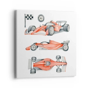 Bild auf Leinwand - Leinwandbild - Ein roter Rennwagen mit einer Zielflagge - 50x70cm - Dem Traum folgen - Moderne Wanddekoration für Wohnzimmer und Schlafzimmer ARTTOR