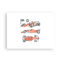 Poster - Ein roter Rennwagen mit einer Zielflagge - 100x70cm - Dem Traum folgen - Moderne Wanddekoration für Wohnzimmer und Schlafzimmer ARTTOR