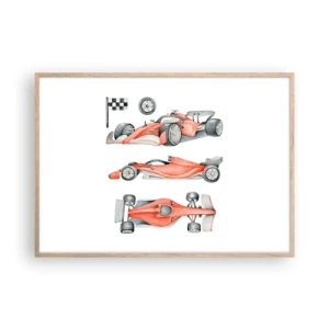 Poster in einem schwarzem Rahmen - Ein roter Rennwagen mit einer Zielflagge - 100x70cm - Dem Traum folgen - Moderne Wanddekoration für Wohnzimmer und Schlafzimmer ARTTOR