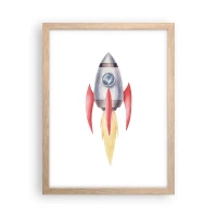 Poster in einem schwarzem Rahmen - Rakete im Aquarellstil auf weißem Hintergrund - 100x70cm - Höher, schneller, weiter - Moderne Wanddekoration für Wohnzimmer und Schlafzimmer ARTTOR