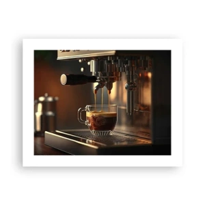 Poster - Kaffeemaschine mit einer Tasse aromatischem Espresso - 100x70cm - Sinnliche Mischung - Moderne Wanddekoration für Wohnzimmer und Schlafzimmer ARTTOR