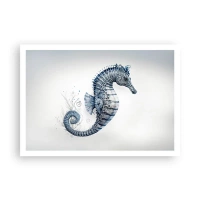 Poster - Seepferdchen in Blautönen mit Aquarelldetails - 100x70cm - Subtiler Witz der Natur - Moderne Wanddekoration für Wohnzimmer und Schlafzimmer ARTTOR