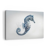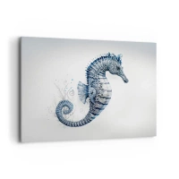 Bild auf Leinwand - Leinwandbild - Seepferdchen in Blautönen mit Aquarelldetails - 100x70cm - Subtiler Witz der Natur - Moderne Wanddekoration für Wohnzimmer und Schlafzimmer ARTTOR