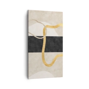 Bild auf Leinwand - Leinwandbild - Ein minimalistisches Design mit geschwungenen Formen in Gold und Schwarz. - 100x70cm - Schleifenformen - Moderne Wanddekoration für Wohnzimmer und Schlafzimmer ARTTOR