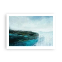 Poster - Abstrakte Landschaft in Türkis- und Grautönen - 100x70cm - Nautische Abstraktion - Moderne Wanddekoration für Wohnzimmer und Schlafzimmer ARTTOR