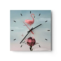 Wanduhr - Glasuhr - Ein rosa Flamingo balanciert auf einem Blumenball - 30x30cm - Basketball-Allegorie - Moderne Wanddekoration für Wohnzimmer und Schlafzimmer ARTTOR