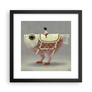 Poster in einem schwarzem Rahmen - Reiter auf einem surrealen Fisch - 30x30 cm
