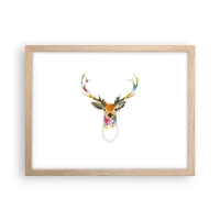 Poster in einem Rahmen aus heller Eiche - Ein mildes Reh in Farbe getaucht - 40x30 cm
